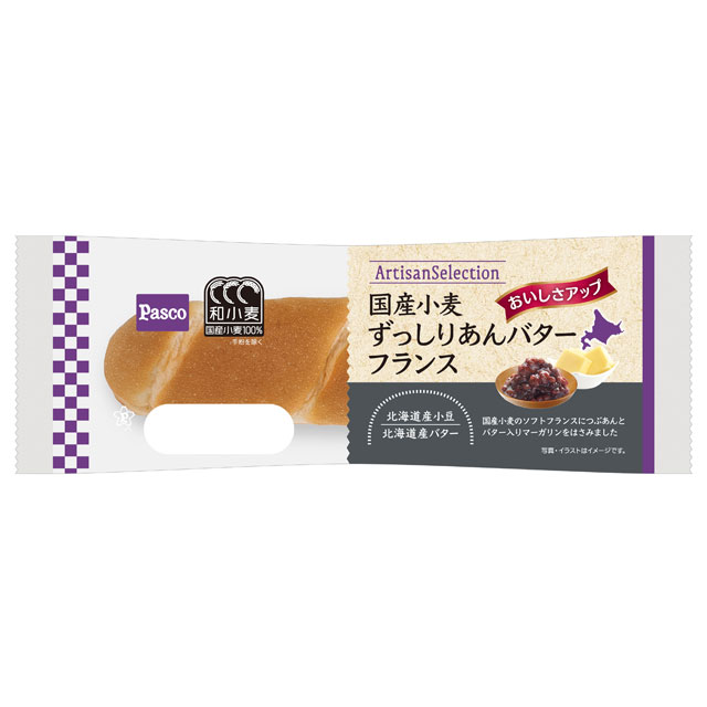 | 新製品の特徴 | 敷島製パン株式会社(Pasco)は、「ArtisanSelection」シリーズの新商品「国産小麦 濃厚ミルクフランス」を、2026年1月1日(木)より関東、中部、関西、中国、四国地区にて期間限定で発売します。 「国産小麦 濃厚ミルクフランス」は、国産小麦100%(手粉を除く)の程よくかみ応えのあるソフトフランスパンで、北海道練乳のクリームと、北海道牛乳入りのミルククリームをはさんだ商品です。 すっきりとした酸味とコクのあるソフトフランスパンが、濃厚なクリームとよく合います。 <同日リニューアル> 国産小麦 ずっしりあんバターフランス 国産小麦のソフトフランスパンでたっぷりの北海道産小豆のつぶあんと北海道産バター入りマーガリンをはさみました。よりかみ応えを感じられる生地にリニューアル。 「ArtisanSelection」とは 「国産小麦」シリーズの中でも、さらに本格的な欧風パンの味わいを求めるお客さまへ向けたシリーズ、「ArtisanSelection(アルチザンセレクション)」。 熟練した職人が開発した欧風パンを手軽においしく、たくさんの方に楽しんでいただきたい。 そんな想いを込めて、それぞれのパンにあう国産小麦の小麦粉を厳選し、原材料や製法にこだわり丁寧に仕上げたPascoの欧風パンシリーズです。 シリーズ全品で国産小麦の小麦粉を100%使用(手粉を除く)しており、パッケージには、Pascoがこれまで培ってきた知見や技術が詰まった国産小麦商品の証である『和小麦』ロゴをデザインしています。 ▽「ArtisanSelection」サイト URL:https://www.pasconet.co.jp/artisan-selection/ 『和小麦』には、Pascoの国産小麦への想いが詰まっています。 『和小麦』は、Pascoの国産小麦の知見や技術が詰まった商品の証です。Pascoは、生産者、研究者など国産の小麦に関わる人たちと深くつながりながら、パン・菓子づくりに取り組んでいます。その歴史の中で培ってきた知見や技術の進化を少しずつ実っていく3つの小麦で表現しました。 ロゴマークには、これからも皆さまにおいしい国産小麦のパンを届けつづけるというPascoの想いを込めています。 ■「和」に込めた想い