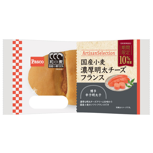 | 新製品の特徴 | 敷島製パン株式会社(Pasco)は、2025年10月1日(水)から「国産小麦」シリーズの新商品として「国産小麦 濃厚ラムレーズンフランス」「国産小麦 全粒粉入りミニバゲット」「国産小麦 ライ麦入りブール 2個入」「国産小麦 ショコラバウム」の4アイテムを発売します。また、好評販売中の「国産小麦 ミニソフトフランス 6個入」「国産小麦 もちっとチーズロール 4個入」の2アイテムをリニューアルするほか、「国産小麦 濃厚明太チーズフランス」で10%増量企画を実施します。 <新発売> 国産小麦 濃厚ラムレーズンフランス 国産小麦の小麦粉を100%使用した(手粉を除く)ソフトフランスパンにゆめちから全粒粉を配合し、香ばしさをプラスしています。レーズン、ラムレーズン、ラム酒入りの濃厚な味わいのクリームをはさんだ、秋にピッタリの期間限定商品です。 販売エリア:関東・中部・関西・中国・四国地区 国産小麦 全粒粉入りミニバゲット 国産小麦の小麦粉を100%使用した生地を低温で長時間発酵させ、石窯オーブンで焼き上げました。国産小麦「ゆめちから」の全粒粉の香ばしい風味をお楽しみください。 販売エリア:関東・中部・関西・中国・四国地区 国産小麦 ライ麦入りブール 2個入 国産小麦の小麦粉を100%使用し独自のルヴァンを加えた風味豊かなソフトフランス生地に、プチプチとした食感のライ麦パフを練り込み、石窯で焼き上げました。アレンジに最適なサイズの欧風パンです。 販売エリア:関東・中部・関西・中国・四国地区 国産小麦 ショコラバウム 国産小麦の小麦粉を100%使用したバウムクーヘン生地にチョコを練り込み、さらにチョコでコーティングしました。しっとりやわらかい生地と、チョコの甘さをお楽しみいただけます。 販売エリア:関東・中部・関西・中国・四国・九州地区 <リニューアル> 国産小麦 ミニソフトフランス 6個入 国産小麦の小麦粉を100%使用し、独自のルヴァンを加えた風味豊かなソフトフランスです。石窯で焼き上げることで、内側はふっくらしっとり、外側は香ばしくパリッと仕上げました。 今回のリニューアルでは配合や製造方法を工夫することで、これまでの風味はそのままに、よりソフトな食感にリニューアルしました。 販売エリア:関東・中部・関西・中国・四国地区 国産小麦 もちっとチーズロール 4個入 国産小麦の小麦粉を100%使用し(手粉を除く)、北海道パルメザンチーズとチェダーチーズ入りダイスを練り込んだ、そのまま食べておいしいもちっとしたロールパンです。 今回のリニューアルでは具材を10%増量(当社従来品比)。さらに生地配合を見直すことで、消費期限を一日延長しました。 販売エリア:関東・中部・関西・中国・四国・九州地区 <期間限定 10%増量企画> 国産小麦 濃厚明太チーズフランス 国産小麦の小麦粉を100%使用し(手粉を除く)、博多辛子明太子を使用した、濃厚な味わいの明太チーズクリームが楽しめるソフトフランスです。 10月1日(水)より1カ月間限定で、商品重量を従来品比で10%増量します。 販売エリア:関東・中部・関西・中国・四国地区 『和小麦』には、Pascoの国産小麦への想いが詰まっています。 『和小麦』は、Pascoの国産小麦の知見や技術が詰まった商品の証です。Pascoは、生産者、研究者など国産の小麦に関わる人たちと深くつながりながら、パン・菓子づくりに取り組んでいます。その歴史の中で培ってきた知見や技術の進化を少しずつ実っていく3つの小麦で表現しました。 ロゴマークには、これからも皆さまにおいしい国産小麦のパンを届けつづけるというPascoの想いを込めています。 <「和」に込めた想い>