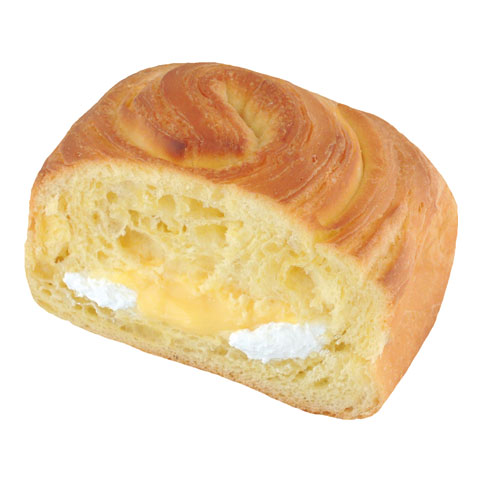 | 新製品の特徴 | 卵黄入りのペーストを折り込み、北海道産牛乳入りカスタードクリームとホイップクリームをサンドしました。 |