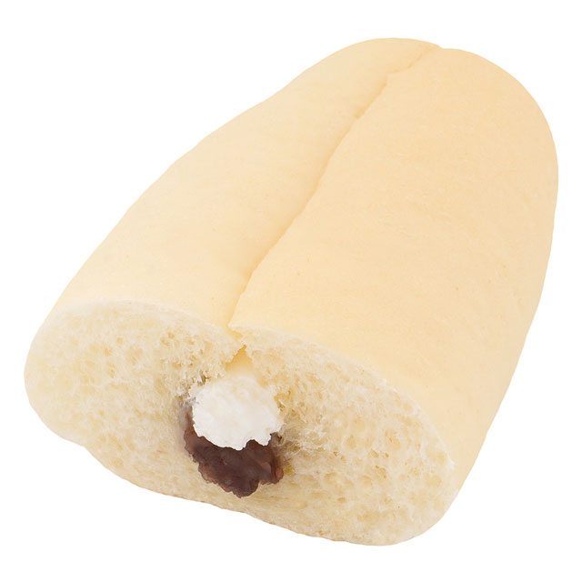 | 新製品の特長 | 生クリームを練り込んだ白いコッペパンに、塩入り粒あんとミルク風味ホイップをサンドしました。 |