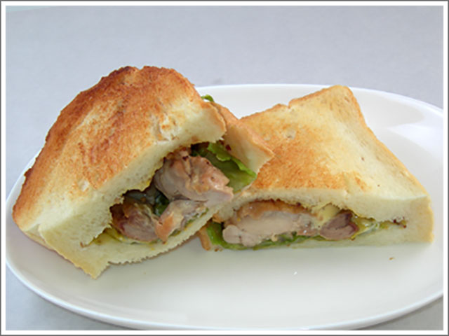 さっくりした歯ざわりのパンにたっぷりのシャッキとしたレタス、粒マスタード、練りからしの風味に甘味のあるチキン・・・どうぞお楽しみください。